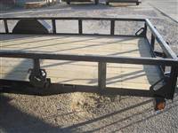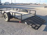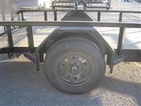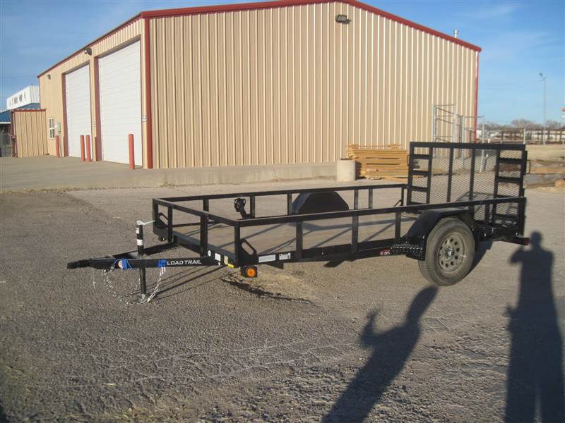 2026 Load Trail 77x12 single axle utility trailer with a 3500# Dexter spring axle, EZ lube hubs, ST205/75R15 radial tires on 5-hole black mod wheels, 2" Bulldog style coupler, set-back jack, HD diamond plate fenders (welded on), treated wood floor (10' flat plus 2' dovetail), 36" ramp gate w/ spring assist, flush mounted LED lights with cold weather wiring harness and 4-wire flat plug, square tubing side rails (welded), (4) corner tie downs, (4) stake pockets, spare tire mount & powder coated Black with primer.