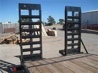 ) D-rings welded on the bed, stake pockets down the sides, tool tray built into the tongue, winch plate at the front of the deck, spare tire mount, and powder coated black w/ primer.