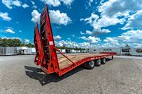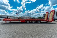 Our Big Daddy 25 and 30 Ton Dual Tri-Axle Trailers are built to make most lowboys jealous. These are the largest tagalong trailers available, and we have plenty of experience building them. We recommend our heavy-duty, 3 x 7.5' hidden hydraulic ramps to move large equipment with ease. Paver Trailer ramp options are also available. Large main frames and 4 I-Beam construction with dual 2-speed bolt-on jacks make this 30 ton trailer one monster of a tag trailer.