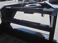 ) 12k spring-loaded drop-leg jacks, full width front toolbox with dual locking lids, winch plate above the toolbox, battery mount and charge wires inside the toolbox, flush mounted LED lights and cold weather wiring harness, rub rail full length with stake pockets and chain pipes, & powder coated black & primer.