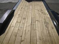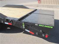 ), 20.5' wood deck plus a 3.5' dovetail with Max Ramps that lay flat or stand up, drive-over fenders, 102" wide deck outside of fenders, 83" between fenders,