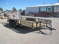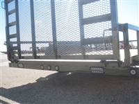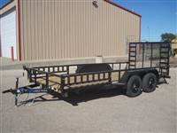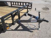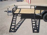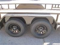 ) 3500# Dexter spring axles, FSA electric brakes on all 4 wheels, EZ lube hubs, ST205/75R15 LRC radial tires on 5-hole black wheels, 2" Bulldog clamp-style coupler, treated wood floor, diamond plate fenders welded on, 48" fold-in ramp gate w/ expanded metal and spring assist, side rail ramps