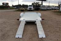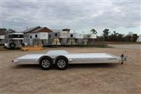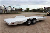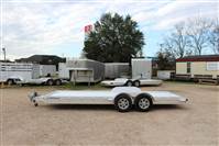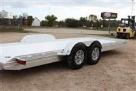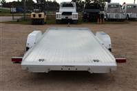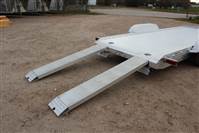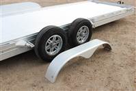 FEATHERLITE Installed Features & Options: 3110 20' open car trailer, Tandem Dexter 4.8K rubber torsion "easy lube" axles with electric brakes, 2 5/16" 21K bumper pull coupler, Crank jack type with wheel, LED light package for open trailers with colored lenses, Skid resistant extruded aluminum deck, Removable fenders with stainless steel latches, Recessed swivel D-ring tie downs, Heavy duty 7' ramps, Rub rails and stake pockets, Goodyear Endurance ST225/75R15 LRE Tires, and 6- hole silver aluminum wheels.