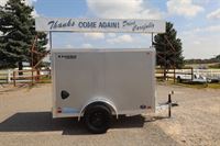 Legend Thunder 5x9' enclosed cargo, 3500# Single torsion axle, rear door, gravel guard, wood lined walls and 3/4" engineered wood floor, side vents, interior light, silver exterior color.