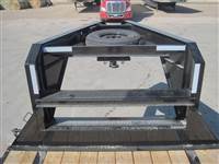 ) 12k spring-loaded drop-leg jacks, LED lights with cold weather wiring harness, front mount toolbox between the jacks, MAX step on driver front corner, Winch plate above the toolbox, side mount toolbox location for a 48" toolbox, diamond plate over the tires, fold down spare tire mount, powder coated black & primer.