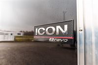 The ICON taper nose enhances aerodynamics and aesthetics, while the 12K hydraulic landing jack provides easy setup and stability. A cast aluminum circular jack access door in the exterior sidewall allows convenient maintenance access. The trailer’s heavy-duty gooseneck design ensures safe, reliable towing, even with full loads.