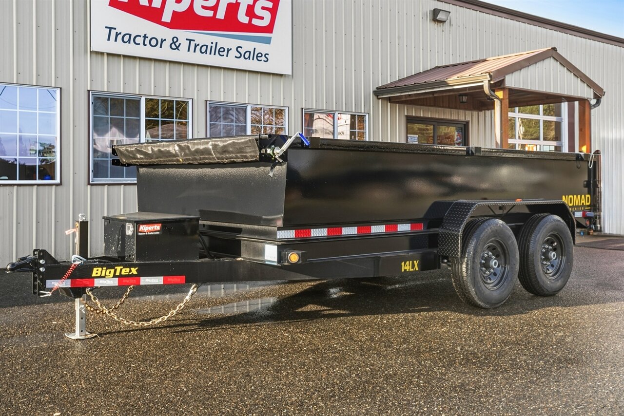 Introducing the 2026 Big Tex Trailers 14LX-14 7x14 14K 2' Side Dump Trailer, designed for versatility and heavy-duty performance. This trailer is ideal for construction, landscaping, and various hauling needs, making it a reliable companion for both professionals and DIY enthusiasts. **Key Features:** - **Construction:** The 14LX-14 is built with a robust, all-steel frame that ensures durability and longevity. The trailer features a powder-coated finish to resist corrosion and wear, providing a reliable solution for outdoor use. - **Dimensions:** With an overall length of 14 feet and a width of 7 feet, this trailer offers a spacious cargo area. The side dump design allows for easy unloading and accessibility, making it suitable for transporting loose materials. - **Weight Capacity:** Designed to handle heavy loads, the 14LX-14 has a gross vehicle weight rating