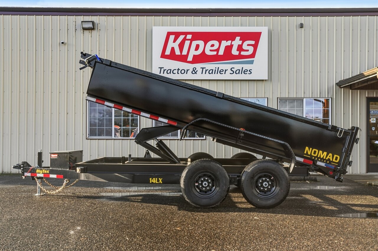 ) of 14,000 pounds. This capacity allows for the transport of various materials, from dirt and gravel to construction debris. - **Axles and Suspension:** The trailer is equipped with two 7,000-pound, adjustable axles, which enhance its stability and towing capabilities. The heavy-duty leaf spring suspension ensures a smooth ride, even with a full load. - **Dump Mechanism:** The 4-foot side dump feature allows for efficient unloading of materials. The hydraulic lift system is powered by a 12V deep cycle battery, ensuring reliable operation. The easy-to-use control system simplifies the dumping process, making it user-friendly for all operators. - **Safety Features:** The 14LX-14 comes with a set of safety features, including a breakaway switch with a battery backup, safety chains, and LED lights for improved visibility during towing. The trailer also features a sturdy ramps, facilitating easy loading and unloading. - **Tires and Wheels:** The trailer is fitted with durable 235/85 R16 radial tires mounted on 8-bolt wheels, providing excellent traction and stability on various terrains. The tires are designed to handle heavy loads while ensuring a smooth towing experience. - **Additional Options:** While the factory default model is equipped with essential features, additional options are available for customization. These may include upgraded hydraulic systems, toolboxes, and additional side height extensions to enhance functionality based on specific needs. Empty weight: 3,660lbs Carrying capacity: 10,340lbs Financing is available on approved credit. LIMITED QUANTITIES AVAILABLE