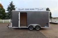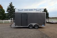 2026 Legend Thunder 7.5 x 18 w/ 2' V Nose, Charcoal, all aluminum trailer, 3.5K axles, gravel guard, side man door drivers' side, passive air vents, rear loading ramp door, interior LED lights, LED clearance lights, aluminum wheels,
