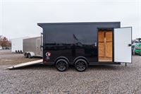.030 smooth black aluminum panels, slant-nose design, and full blackout trim on fenders, door frames, and hardware.