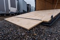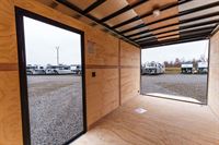 Rear ramp door with plywood flap and spring assist; 32" x 72" RV side door (15" from front) with aluminum hold-back.