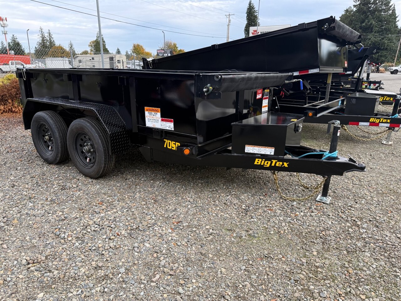 ) of 7,000 lbs, this trailer can accommodate a significant payload, making it suitable for transporting materials such as soil, gravel, and debris. 5,270# of carrying capacity - **Dimensions:** The trailer features a 5x10-foot bed, providing ample space for various hauling tasks. The bed is designed to facilitate easy loading and unloading, whether you are using a wheelbarrow, shovel, or other equipment. - **Tandem Axles:** Equipped with two 3,500 lb axles, the trailer offers enhanced stability and weight distribution, allowing for smoother towing and improved handling, especially when fully loaded. - **Hydraulic Dump System:** The 70SR comes with a hydraulic dump feature, making it easy to unload materials with the push of a button. This system enhances efficiency and reduces manual labor during loading and unloading processes. - **Safety Features:** It is equipped with LED lights for improved visibility and safety during nighttime use. - **Tire and Wheel Specifications:** The trailer is fitted with radial tires, providing better traction and stability on various road surfaces. The wheels are designed to support the trailer’s weight while ensuring smooth towing. - **Paint Finish:** The 70SR is finished with a durable powder coat that helps resist rust and corrosion, maintaining its appearance and functionality over time. - **Warranty:** Big Tex Trailers provides a 3 year limited warranty, ensuring that you are covered for any manufacturer defects, giving you peace of mind with your investment. The 2026 Big Tex Trailers 70SR 70SR-10-5WDD 7K 5x10 Dump Trailer combines strength, functionality, and ease of use, making it a reliable choice for those in need of a high-performing trailer. Trailer weight: 1,730# Financing is available on approved credit.