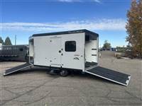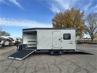 ), two benches, USB plugs,110V plug, mirror, Premium stereo with amp, KICKER sub-woofer and speakers, Loading Lights above each ramp, recessed tie rings, Power rear ramp, front load ramp, high power fan in the roof, porch light by main door, Paper Towel rack/cabinet, Hooks in ceiling to hang one piece riding gear, and running lights. Call 1-800-688-8757 for more information! Great Financing and Nationwide Delivery Available!