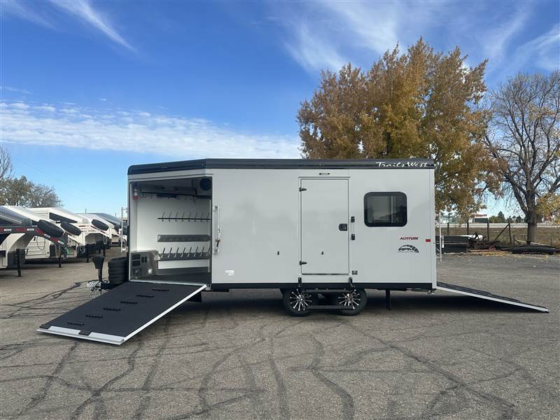 Scott Murdock Trailer Sales, LLC is offering a 2026 Trails West 20' RPM Altitude Package edition bumper pull, 40,000 BTU furnace, Propane Tanks, fully insulated interior/floor, marine grade flooring, 3,500k axles, 15'' rims and tires, ducted under snowmobile tracks, LED ceiling lights, floor lights, ELECTRIC jack, spare tire, Ducted heat package for boots, gloves, bibs, jackets and helmets, two storage boxes