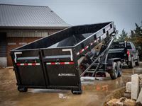 Our biggest addition to our dump trailer lineup this year, the DBG Gooseneck Roll-Off Dump Trailer. First we designed a trailer frame that could handle the heaviest of loads with a 12" 19lb I-beam neck and 10" frame. Built with 2 7,000lb electric brake axles to get you to the job site and back again and a TH-520 scissor hoist for maximum lifting power - this trailer can haul! Add a bin of your choice with 48" 10 gauge sides, 4 1/2" DIA front rear rollers and a 20k winch system conveniently located in the front toolbox, all designed to handle any situation you throw at it.