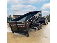 Our biggest addition to our dump trailer lineup this year, the DBG Gooseneck Roll-Off Dump Trailer. First we designed a trailer frame that could handle the heaviest of loads with a 12" 19lb I-beam neck and 10" frame. Built with 2 7,000lb electric brake axles to get you to the job site and back again and a TH-520 scissor hoist for maximum lifting power - this trailer can haul! Add a bin of your choice with 48" 10 gauge sides, 4 1/2" DIA front rear rollers and a 20k winch system conveniently located in the front toolbox, all designed to handle any situation you throw at it.