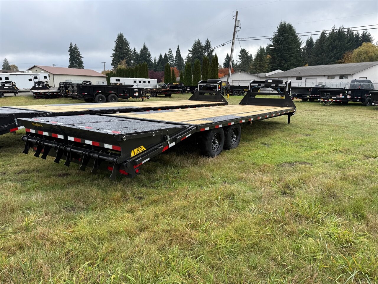 ) capacity, making it suitable for a variety of applications, from construction to landscaping and beyond. **Key Features:** - **Flatbed Design:** The 14GN features a flatbed design that maximizes loading space, providing a generous 25-foot deck with an additional 5-foot tapered neck, ensuring ample room for larger equipment and materials. - **Mega Ramps:** Equipped with Mega Ramps, this trailer offers easy loading and unloading. The ramps are designed to accommodate low-profile equipment, allowing for a smooth transition onto the deck without the risk of scraping. - **Heavy-Duty Construction:** Constructed from high-quality steel, the 14GN is built to withstand the rigors of heavy use. The frame features a 12-inch I-beam, ensuring structural integrity and longevity. - **Treated Pine Decking:** The deck is made from treated pine, providing a strong and stable surface for transporting various loads. This material is resistant to weathering and decay, ensuring durability over time. - **Adjustable Coupler:** The adjustable coupler allows for easy attachment to a variety of tow vehicles, enhancing compatibility and convenience. - **LED Lighting:** The trailer is equipped with LED lights for improved visibility and safety during nighttime operations. These lights are durable and energy-efficient, ensuring reliable performance. - **Electric Brakes:** Featuring electric brakes on all axles, the 14GN provides enhanced stopping power, improving safety when hauling heavy loads. - **Dual Axles:** The dual axle setup distributes weight effectively and provides better stability on the road. Each axle is equipped with heavy-duty tires designed to handle high loads and rough terrain. - **Powder Coat Finish:** The trailer is finished with a high-quality powder coat, providing resistance against rust and corrosion, ensuring it maintains its appearance and structural integrity over time. The 2026 Big Tex Trailers 14GN 25+5 Flatbed Gooseneck is engineered for those who demand strength, reliability, and functionality in their hauling solutions. Whether for commercial use or personal projects, this trailer is equipped Trailer weight: 6,000#. Carrying capacity of 9,900#.