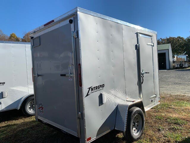 2026 Homesteader Intrepid, 6x12, SA, Silver, Ramp w/ 4" Flap, 6'6" Tall, 24" O.C. Roof Supports, 16 O.C. Floor Crossmembers & Wall Studs, (4) 1000lb Recessed D-Ring Tie Downs, 3/4" Exterior-Grade Plywood Flooring, 3/8" Plywood Interior Wall Liner, 32" Side Entry Door, (1) Interior Light, 2000lb Top-Wind Jack, 15" Tires, GVWR 2990, Empty 1679, Carry 1311