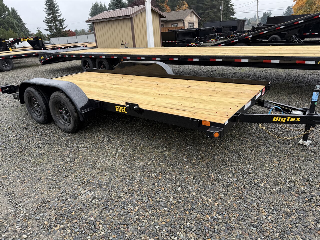 ) of 6,000 pounds, this trailer is capable of handling heavy loads while maintaining stability and safety on the road. - **Construction:** The trailer is constructed with a sturdy 2” x 3” tubular steel frame, ensuring long-lasting performance and resilience against the rigors of daily use. The bed features a 2” treated pine wood floor, providing a solid base for your cargo while enhancing the trailer's overall durability. - **Axles & Suspension:** The 60EC-16 is equipped with a 3,500-pound axle with a leaf spring suspension system, offering a smooth ride and reliable support for your loads. This configuration helps to minimize bounce and sway during transport, ensuring your cargo remains secure. - **Ramps:** This model comes with a pair of durable, slide in ramps that are designed for easy loading and unloading. The ramps are constructed from steel and feature a non-slip surface, providing added safety when driving equipment onto the trailer. - **Safety Features:** The trailer includes a standard 2” coupler, safety chains, and a breakaway switch, all of which are essential for ensuring safe towing. Additionally, the trailer is fitted with LED lighting for improved visibility during nighttime operation. - **Wheels & Tires:** The 60EC-16 features 15” radial tires mounted on 5-bolt wheels, designed for superior traction and stability. These tires are built to withstand various road conditions, making them suitable for both highway and off-road use. - **Finish:** The trailer is coated with a durable powder coat finish that provides resistance against rust and corrosion, enhancing its longevity and maintaining its appearance over time. The 2026 Big Tex Trailers 60EC-16 7x16 6K Flatbed Trailer with Ramps is a reliable and practical choice for those seeking a trailer that combines strength, utility, and safety. Trailer weight: 1,752# Carrying capacity: 4,290#