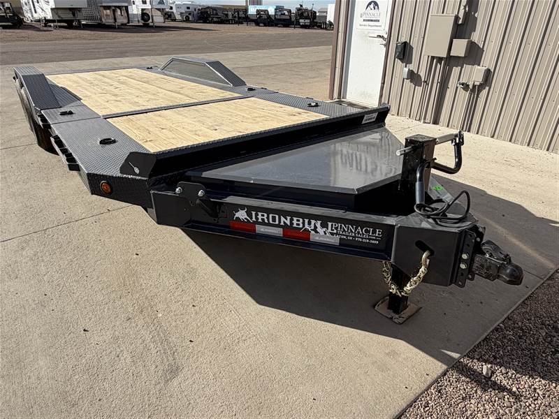 Pinnacle Trailer Sales LLC 2026 Iron Bull TWB model equipment tilt! Options include 7K torsion axles with electric brakes, 8' wide deck with drive over fenders, heavy duty D-ring tie downs, LED lighting, 16' gravity tilt section with 6' stationary front deck! ZERO DOWN financing available! Call or text sales today 970-219-5699