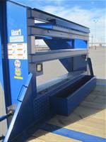 ) LED work lights under winch plate, locking chain rack on the back of the neck uprights, chain hanger inside front toolbox, 4" sliding ratchets & track full length, MAX step at each front corner, side mount toolbox location for a 48" toolbox, powder coated BLUE & primer.