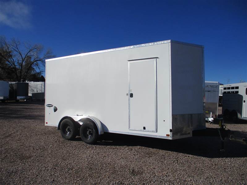 Look 7x16, 10K, bonded sides, side door, rear ramp, white exterior, 7'6" interior height