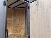) is Gray and the following Options: OHV PKG= 7' TALL,78" WIDE DOOR OPENING, .080 POLYCOR SIDING, ALUMINUM THREAD PLATE ON SIDES, BACK, AND FRONT, AND REAR SPOILER. ALSO HAS BLACK OUT PKG.