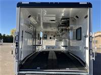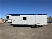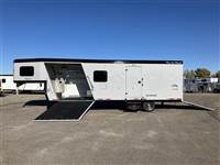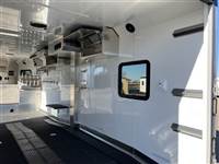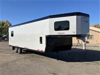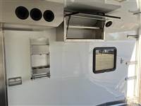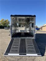 ), USB plugs,110V plugs, mirror, Loading Lights above each ramp, four drain plugs, points, POWER rear ramp, front side load ramp, additional side window, two power fans in the roof, porch light by main door, Paper Towel rack/cabinet, 2 fold down bench's, Hooks in ceiling to hang one piece riding gear, two fuel doors, carpeted Goosneck with camper style windows in the nose, LED running lights and cup holder, LED load lights over ramp, LED hitching light under gooseneck, Call 1-800-688-8757 or 970-663-1100 for more information! Great Financing and Nationwide Delivery Available!