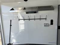 ) 40,000 BTU furnaces, fully insulated interior/floor, marine grade flooring, 6k Dexter torsion axles, 15'' aluminum rims and tires, ducted under snowmobile tracks, LED ceiling lights, LED floor lights, electric/hydraulic single jack, spare tire, Ducted heat package for boots, gloves, bibs, jackets and helmets, two storage boxes