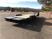 REDUCED: 2026 20’ Flatbed equipment trailer by Liberty Trailer, trailer measures 83” W x 20’L, 17' flat deck and 3' metal ramp assembly, large toolbox, rub rail, stake pockets, LED lights, treated pine decking, electric brakes on both axles, adjustable 2 5/16 coupler, tandem 7000# axles with easy lube hubs, GVWR = 15400#, Payload = 11,880#