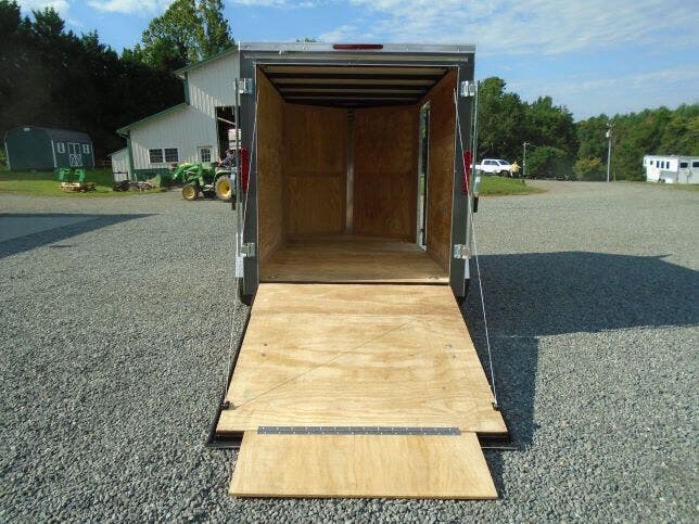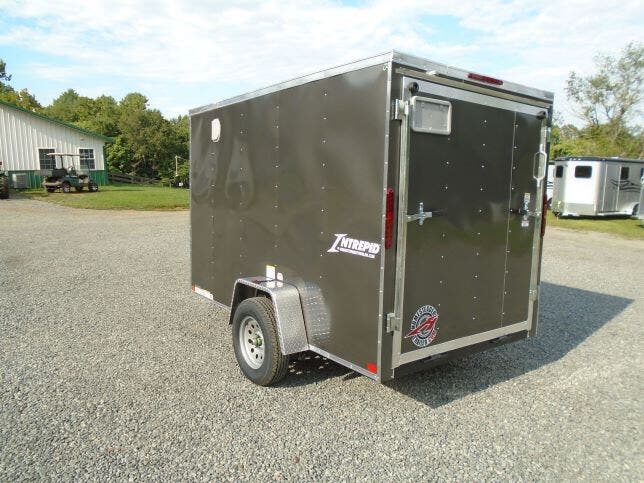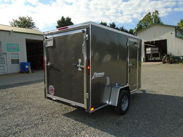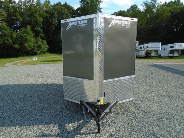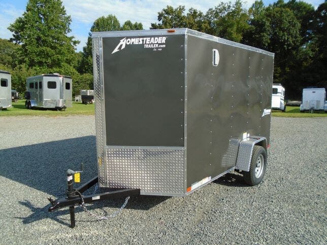 2026 Homesteader Intrepid, 6x10, SA, Charcoal, Ramp w/ 4" Flap, 6'6" Tall, 24" O.C. Roof Supports, 16 O.C. Floor Crossmembers & Wall Studs, (4) 1000lb Recessed D-Ring Tie Downs, 3/4" Exterior-Grade Plywood Flooring, 3/8" Plywood Interior Wall Liner, 32" Side Entry Door, (1) Interior Light, 2000lb Top-Wind Jack, 15" Tires GVWR 2990, Empty 1653 , Carry 1337