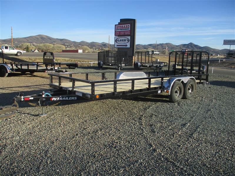 PJ 83x20 10K utility, 2"x2" square side rails, rear ramp gate, spare tire and mount
