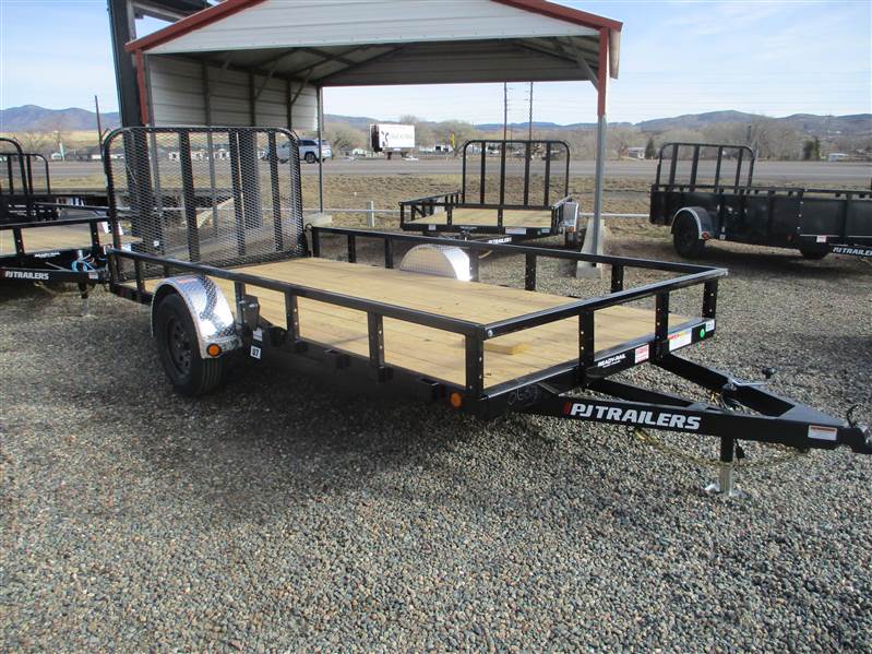 PJ 77x14 single axle utility, 2"x2" side rails, rear ramp gate, spare tire and mount