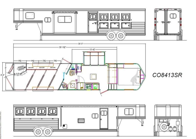 The CO8313SR is a 4 Horse, 8' wide unit with 13' of living quarters with Dual Seating.