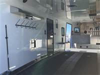 ) 40,000 BTU furnaces, fully insulated interior/floor, marine grade flooring, 6k Dexter torsion axles, 15'' aluminum rims and tires, ducted under snowmobile tracks, LED ceiling and floor lights , electric/hydraulic single jack, spare tire, Ducted heat package for boots, gloves, bibs, jackets and helmets, two storage boxes