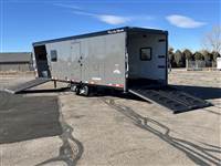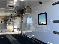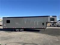 ), USB plugs,110V plugs, mirror, Premium stereo with amp, KICKER sub-woofer and speakers, Loading Lights above each ramp, recessed tie rings, four drain plugs, points, POWER rear ramp, front side load ramp, additional 24x30 side window, two power fans in the roof, porch light by main door, Paper Towel rack/cabinet, 2 fold down bench's, Hooks in ceiling to hang one piece riding gear, two fuel doors, carpeted Goosneck with camper style windows in the nose, LED running lights and cup holder, LED load lights over ramp, LED hitching light under gooseneck, Call 1-800-688-8757 for more information! Great Financing and Nationwide Delivery Available!