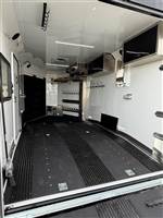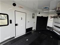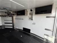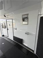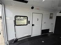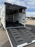 ), two benches, USB plugs,110V plug, mirror, Premium stereo with amp, KICKER sub-woofer and speakers, Loading Lights above each ramp, recessed tie rings, Power rear ramp, front load ramp, high power fan in the roof, porch light by main door, Paper Towel rack/cabinet, Hooks in ceiling to hang one piece riding gear, and running lights. Call 1-800-688-8757 for more information! Great Financing and Nationwide Delivery Available!