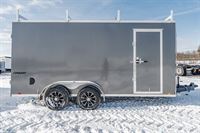 Built for reliable everyday use, this 2026 Formula Conquest 7x16 combines a rugged steel frame with a premium screwless aluminum exterior and a sloped V-nose for better airflow and usable space. Tandem 3,500-lb brake axles, rear double doors, ladder rack system, and upgraded black aluminum wheels make this trailer work-ready from day one.