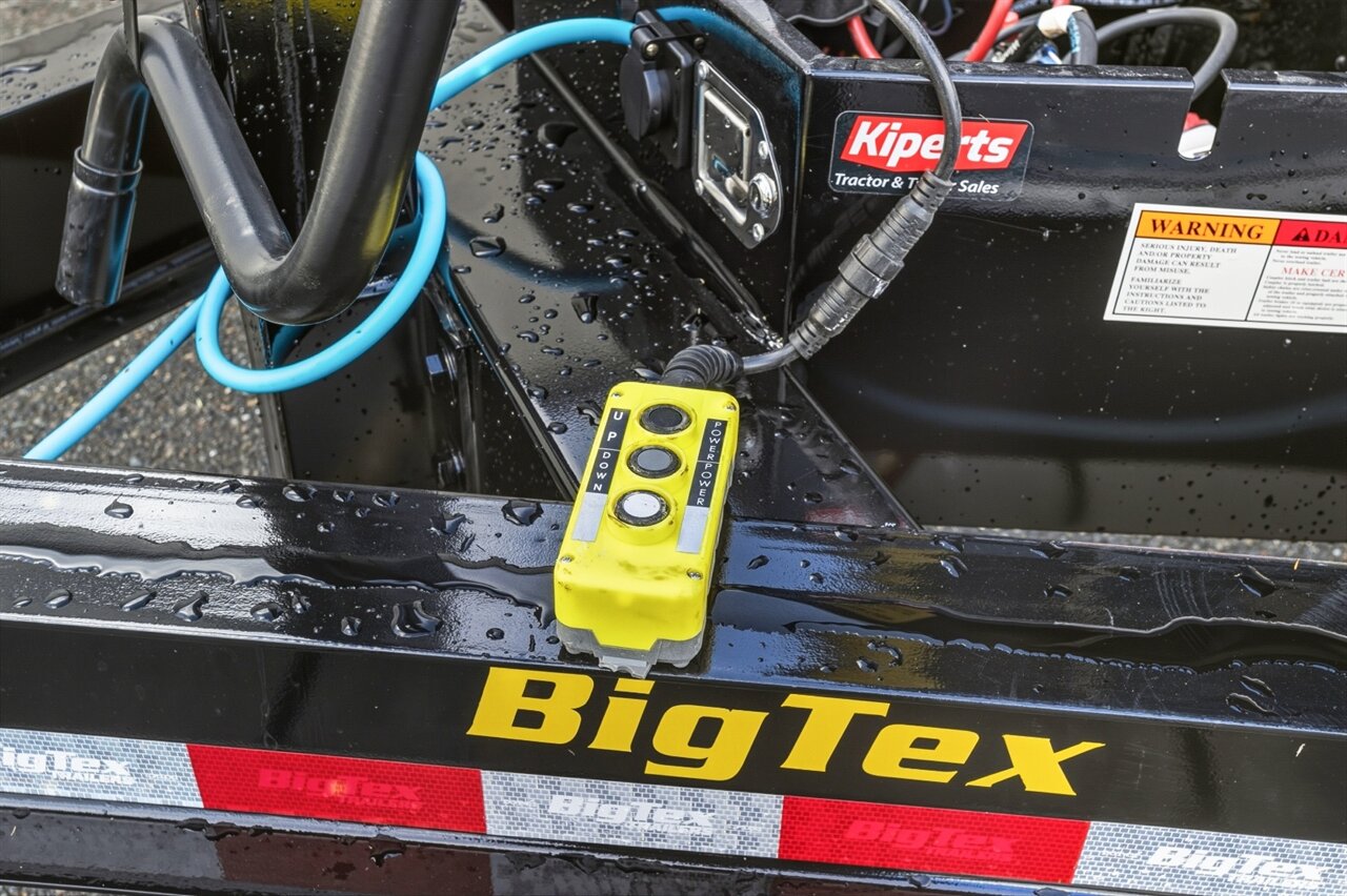 The Big Tex 14LP is a heavy-duty, low-profile dump trailer with a 14,000 lbs GVWR, featuring tandem 7,000# axles, an 8" I-beam frame, 10 gauge steel floor, and a power-up/down scissor hoist, often coming with 16' or 14' deck lengths, 83" width, combo gate, and standard LED lighting with a tarp kit for versatile equipment hauling and material transport. Key Specifications GVWR