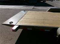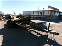 ) 4" D-rings welded on the bed, Tongue mount toolbox, Winch plate at front of tilt deck, TUFF wireless remote kit, spare tire mount, and powder coated Western Metallic with primer.