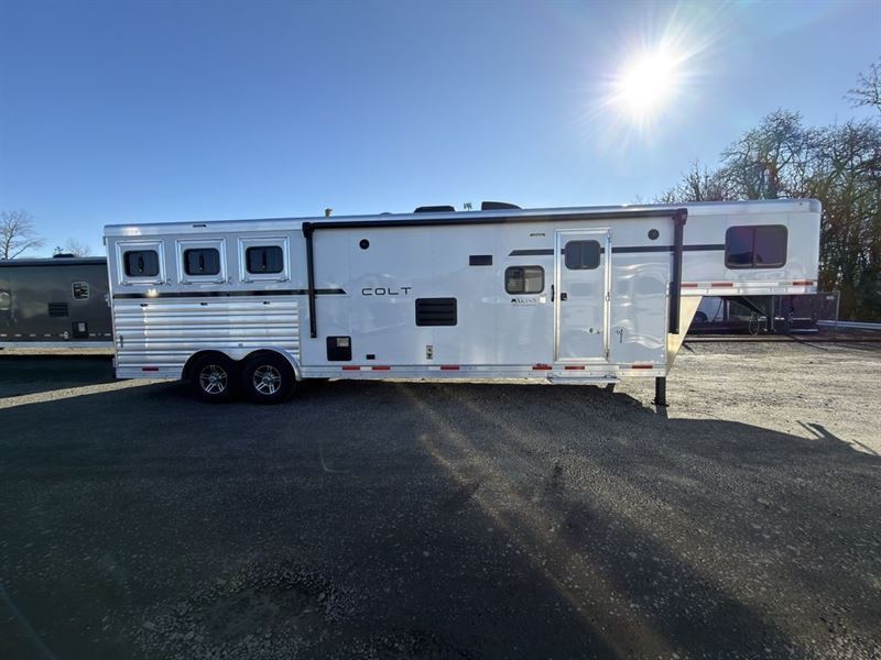 The CO8313SR is a 3 Horse, 8' wide unit with 13' of living quarters with Dual Seating.