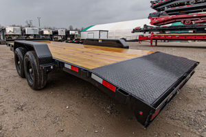 A reliable, heavy-duty car hauler designed for safe vehicle transport with user-friendly features.