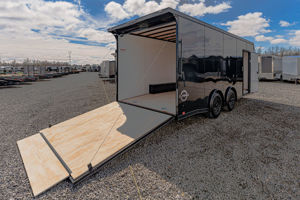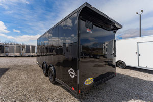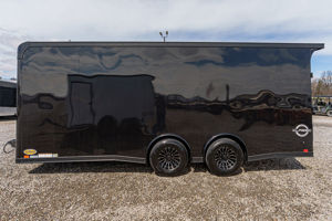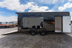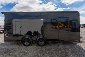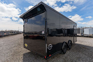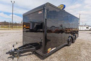 This 8.5’ x 20’ enclosed car hauler is built for serious hauling with upgraded 5,200 lb axles, a heavy-duty I-beam frame, and a beavertail design for easier loading. Finished in a sleek black exterior with the Black Out Package, it combines rugged performance with a sharp, professional look—ideal for transporting vehicles, equipment, or race setups.