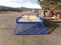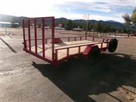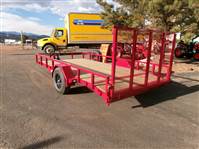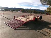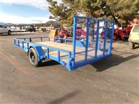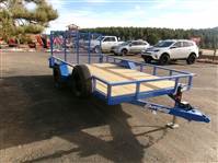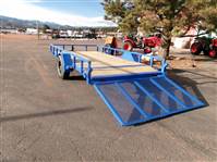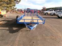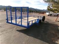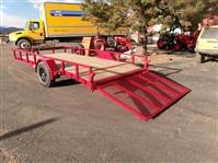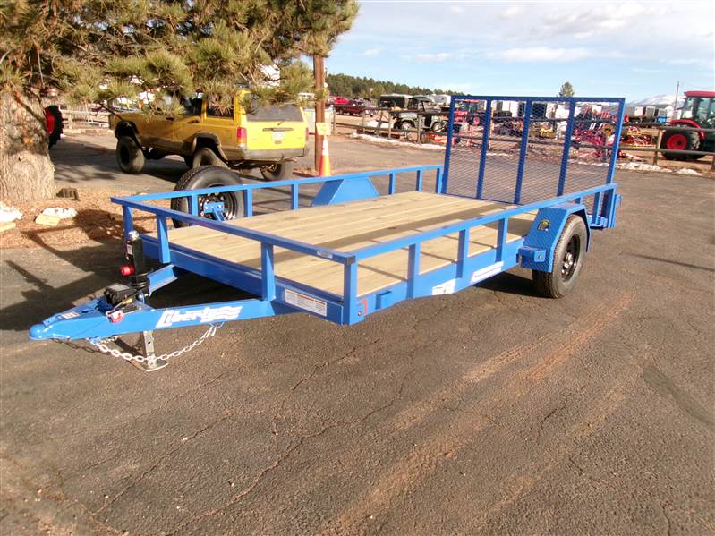 REDUCED PLUS FREE MATCHING SPARE WITH MOUNT: 2026 14' single axle utility trailer by Liberty Trailer, measures 83” wide x 12’ plus 2’ dove tail, rear single tailgate ramp, 5000# axle with easy lube hubs and brakes, 7K set back jack, 2” coupler with chains, 6 stake pockets