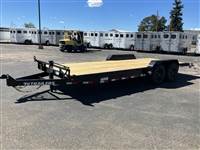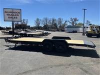 Scott Murdock Trailer Sales, LLC offering a PJ 22' equipment with slide in ramps. Standard features include 6" channel frame and tongue, 3" Channel crossmembers 16" on center, 2" treated pine deck, 83" wide deck, LED flush mount lights, Sand Blasted and powder coated, two 8K leaf spring axles, 16,000lb GVWR, 2 5/16 ball, 16" wheels and 235/80R16 tires, stake pockets, 9"x72" Removable steel fenders, spare tire mount, extra D Rings on deck frame. 3 Year Structural Warranty. Financing and delivery available.
