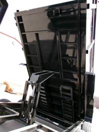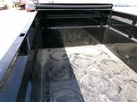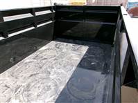 ), spare tire on a fold down mount in the neck, 48" walls, 10-gauge double formed walls & 7-gauge floor, removable tarp assembly, Scissor lift w/ 6" cylinder, elec/hyd KTI pump w/ power up, power down, & gravity down, HD diamond plate fenders,