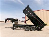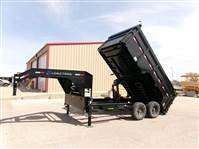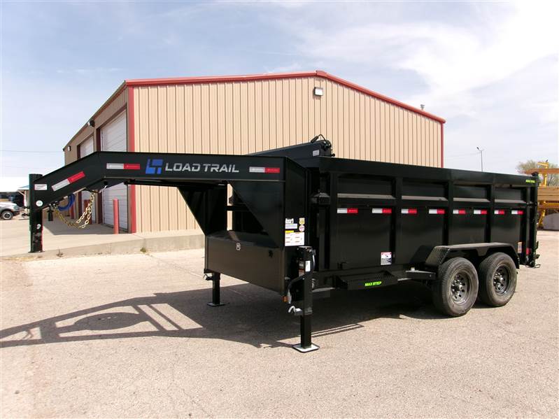 2026 Load Trail 83x14 gooseneck dump trailer with 2-7000# Dexter spring axles, EZ lube hubs, 4-wheel FSA electric brakes, 235/80R16 LRE radial tires on 8-hole black wheels