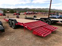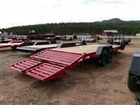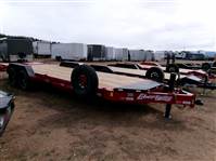 REDUCED: 2026 22’ Flatbed equipment trailer by Liberty Trailer, trailer measures 83” W x 19’ plus 3’ folding ramps, 8” I-beam frame and tongue, A-Frame 2 5/16 adjustable coupler with chain hooks, 12K jack, rub rail and stake pockets, 6 D rings, oversized tongue toolbox, skid steer fork storage pockets, LED lights, treated pine decking, tandem 7000# axles with easy lube hubs, electric brakes on both axles, GVWR = 15,400#, Payload = 11,580#