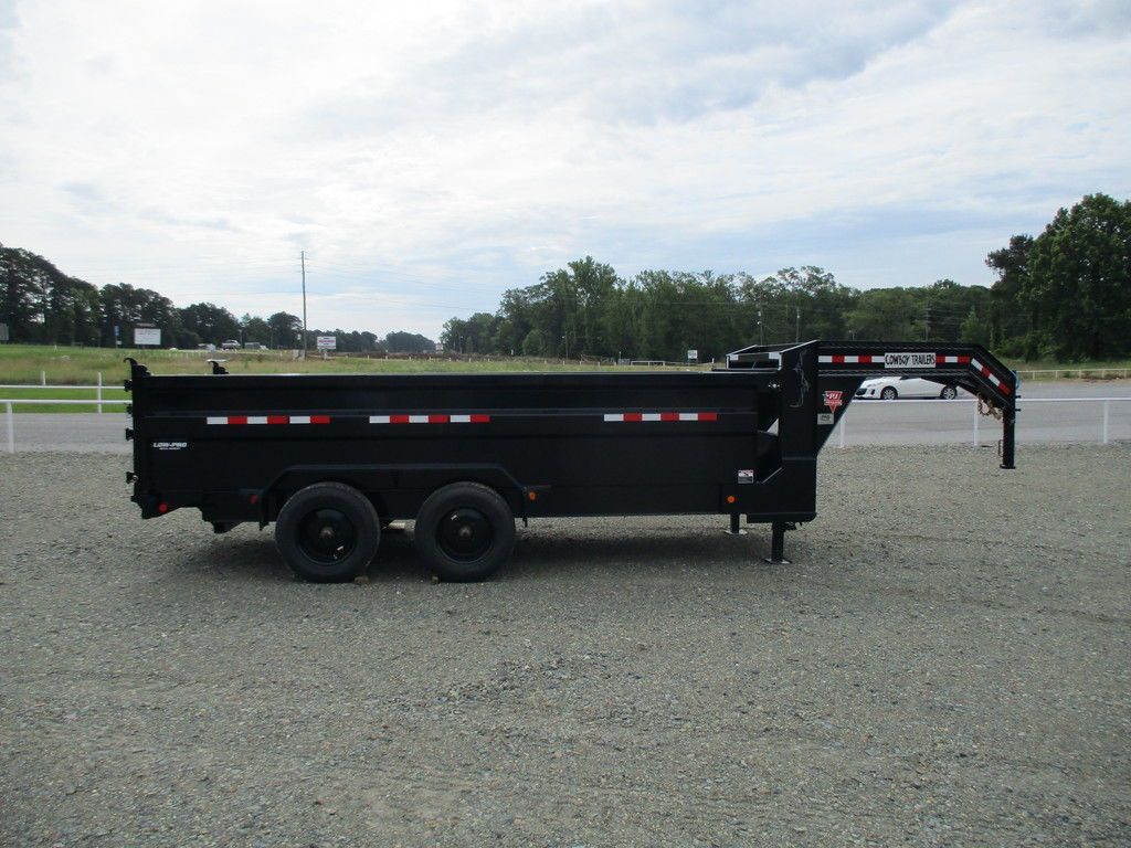 Haul anything from sand and aggregate to scrap and building materials. Many have slide-in ramps to load equipment. Various lengths, capacities, axles, hydraulic upgrades, and other options.
