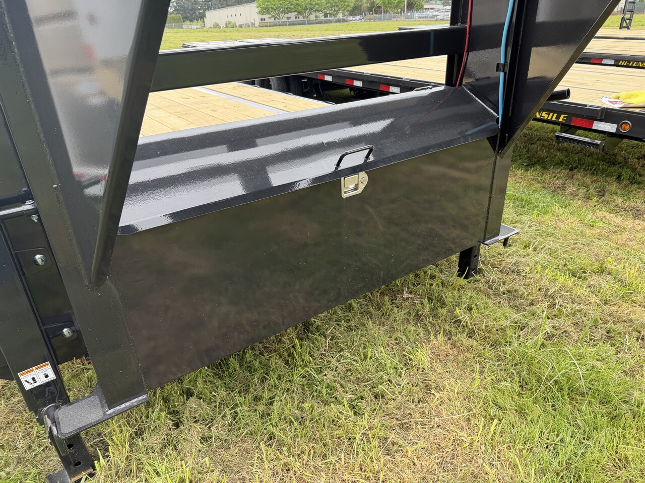 ) for easy equipment loading and full deck usability Dual 12,000 lb drop-leg jacks for stability and durability Heavy-duty rub rail, stake pockets, and chain spools for secure tie-downs Lockable front toolbox for convenient storage LED lighting with sealed wiring harness for long-term reliability 5’ dovetail for smoother loading transitions Why Choose the 16GN: The 16GN is ideal for those who need strong payload capacity